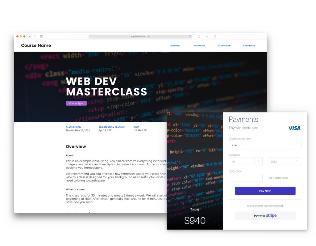 To help scale your enrollments, Teachfloor provides tools for customizing landing pages for your courses. Where you can describe the course, put up registration links and attach the online payments section. Having a good landing page is important for attracting prospects. They will judge your course on its basis. Make sure to make it impressive. Secondly, this landing page will act as your assistant for managing student applications so you don't have to get buried under the weight of applicant emails. It will sort your life for you.