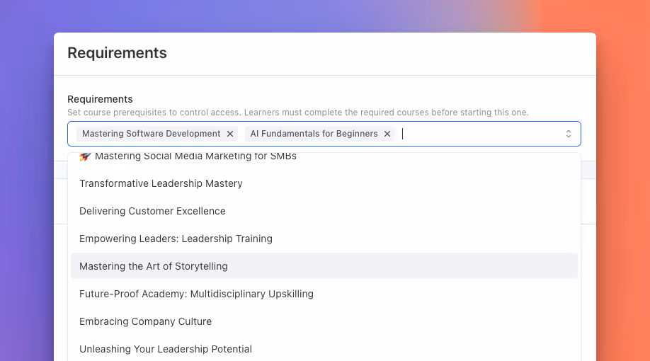 Teachfloor now lets you set course prerequisites. Build learning paths where learners must complete required courses before starting new ones.