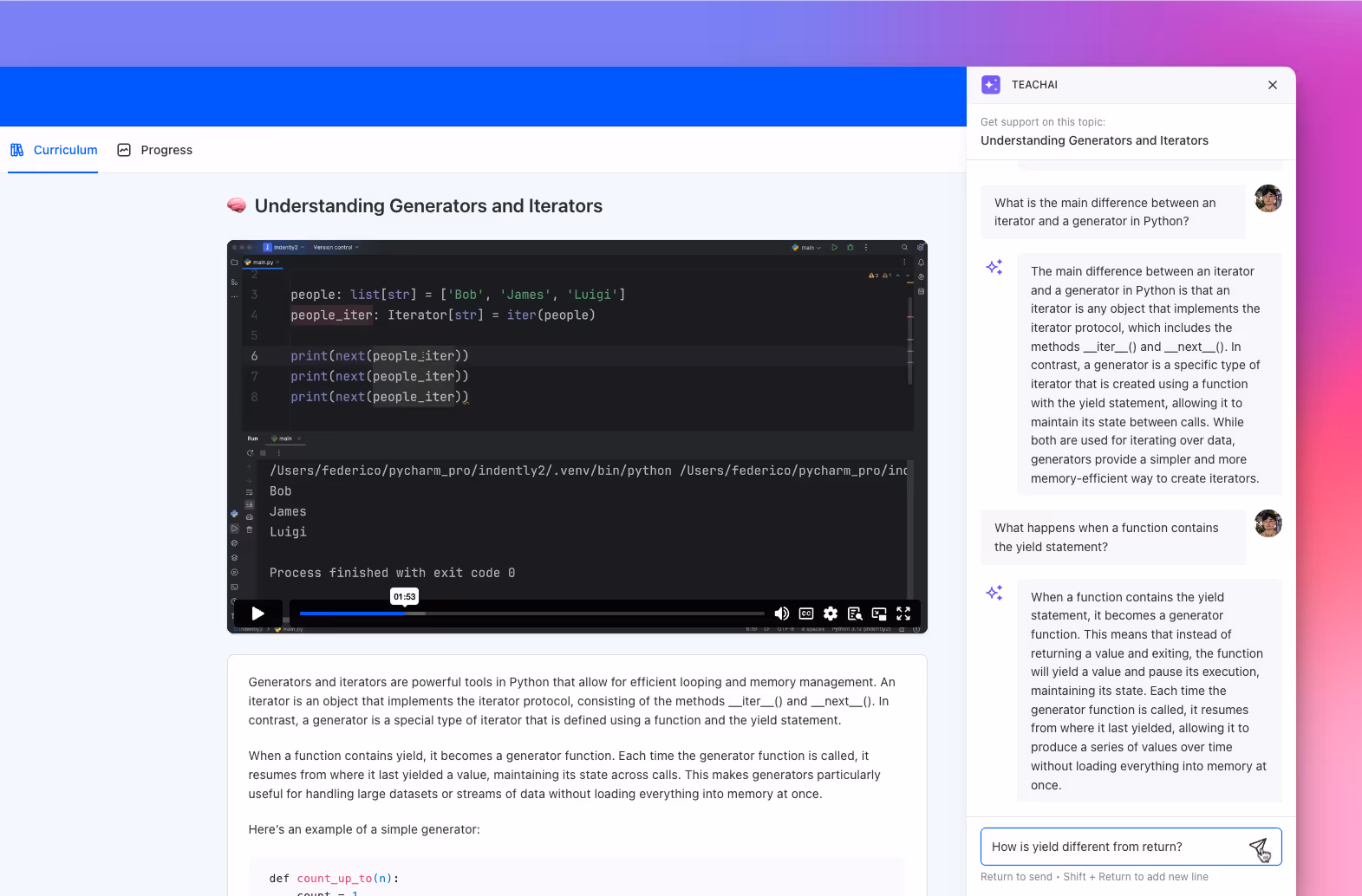 Discover the new AI Assistant for students. Answer questions, clarify content, and enhance learning directly inside Teachfloor.